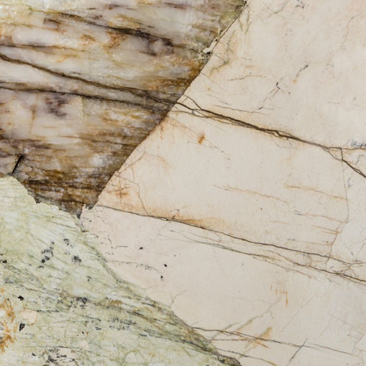 Cristallo Dolce, una gema cristalina semipreciosa, combina tonos cálidos y fríos en una danza visual única.